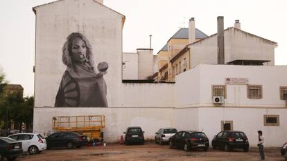 Un retrato de papel en blanco y negro de 11 metros de altura, pegado sobre una enorme fachada. Envuelta en la bandera romaní, con un espejito en una mano y una barra de labios en la otra, aparece la imponente imagen de Jenifer Escobedo, una cordobesa de 26 años gitana y transexual. Una esbelta mujer anónima de la deprimida zona sur de Córdoba, donde siete fotomurales encumbran a siete héroes del distrito en la iniciativa Made in barrio del área de Juventud del Ayuntamiento, creada para forjar referentes, ejemplos e inspiración entre sus vecinos. Talento, esfuerzo, solidaridad, superación y compromiso sobre pared. El de ella está enfrente del recién inaugurado Centro de Creación Contemporánea de Andalucía.