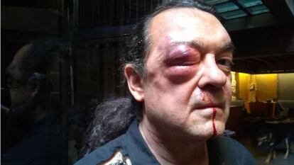 .@policia. Esto le ha pasado a Fernando Barredo @LocArteRitual el compañero que defiende a Heidi.v #ViolenciaMachista #NiUnaMenos . pic.twitter.com/7cbmulxfzZ