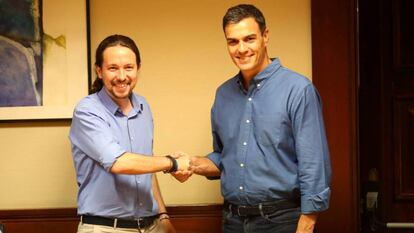 Sánchez e Iglesias acuerdan pedir al presidente que asuma responsabilidades por la financiación ilegal del PP