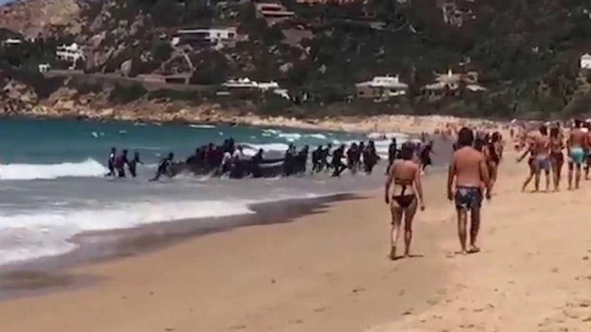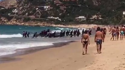Decenas de inmigrantes desembarcan entre los bañistas de una playa de Cádiz