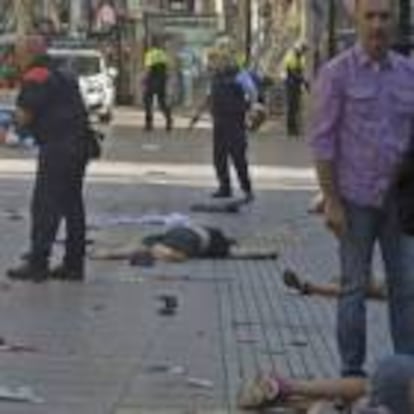 Una furgoneta atropella a más de cien personas en un recorrido de 530 metros en el paseo peatonal de La Rambla en el atentado más grave que sufre España desde el 11-M de 2014. El asalto causa 13 víctimas mortales y heridas a más de 100 personas. El conductor abandonó el vehículo a la altura del teatro del Liceu y se dio a la fuga. Aún permanece huido. La policía evacúa los locales de la zona. En la mañana de este viernes, los Mossos informaron de que buscan a Mussa Oukabir, de 17 años, como presunto autor del atropello. Oukabir es hermano del primer detenido en la operación.