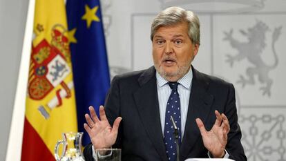 Como una continuación del discurso del presidente del Gobierno del pasado jueves, y el de la vicepresidenta, Soraya Sáenz de Santamaría, del día anterior, el ministro portavoz desgranó un pronunciamiento político de principios en defensa de la democracia, los derechos de las minorías, de la dignidad de la oposición parlamentaria catalana, junto a fuertes descalificaciones por su actuación a los promotores del secesionismo. “Proporcionalidad y firmeza”, son los principios por los que el Gobierno se quiere conducir en este trance y es la respuesta que se ofrece cuándo se requiere información y opinión sobre si se activará el artículo 155 de la Constitución. Esta previsión constitucional consiste en suspender determinadas competencias de la Administración catalana —no la autonomía al completo— para que las asuma la Administración central.