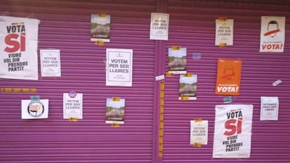 El cierre del local ha amanecido cubierto de carteles en defensa del referéndum en Cataluña