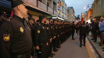 Decenas de personas se han concentrado este miércoles en la localidad de Pineda de Mar (Barcelona), en la que se hospedan 400 agentes de Policía Nacional, para trasladarles su apoyo. Los manifestantes han coreado consignas como: "No estáis solos". "Yo soy español", ¡España. una! ¡España, libre! o, ¡No somos fachas, somos españoles", entre otras. Las autoridades han agradecido en formación al apoyo de los vecinos y han gritado al unísono: ¡Viva España, viva Cataluña!. Los agentes también ha recibido muestras de admiración en otras localidades como San Boi de Llobregat, (Barcelona).