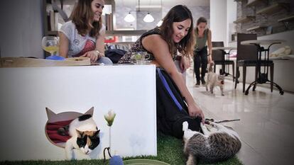 La idea japonesa de bares con gatos se abre paso en España. En algunos, como el Cat Bar de Valencia, los animales se pueden adoptar.