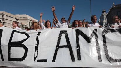Miles de personas partidarias del diálogo entre el Gobierno de Mariano Rajoy y el Govern de Carles Puigdemont se han concentrado al mediodía ante los ayuntamientos de ciudades de toda España. Los congregados, vestidos de blanco y sin banderas, han apelado a ambas Administraciones a encontrar una solución a la crisis política e institucional en Cataluña desencadenada por el desafío soberanista. Madrid y Barcelona fueron las urbes donde la convocatoria por redes sociales de la plataforma Parlem Hablemos tuvo un mayor seguimiento.