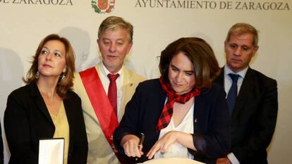 Todo empezó el 22 de septiembre. El Ayuntamiento de Zaragoza concedió aquel día por unanimidad la Medalla de Oro a Barcelona y Cambrils, las dos ciudades que sufrieron los atentados de agosto: las alcaldesas Ada Colau y Camí Mendoza (ERC) irían a recoger el galardón. Entonces fue una noticia sin apenas eco. Pero desde aquel día, ya en plena campaña por el referéndum catalán, ha habido en Zaragoza media docena de protestas que han calentado el ambiente.
