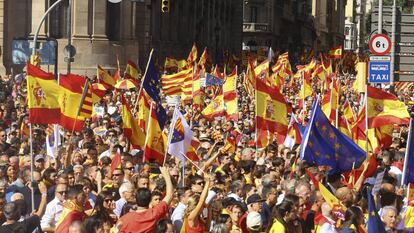 Manifestantes por la unidad de España abuchean a Iglesias en Barcelona