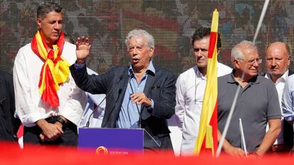 Más allá de los discursos, con la imagen plural de Vargas Llosa y Josep Borrell apelando en español y catalán a la grandeza de Cataluña en España y Europa, ahora se trata del impacto que esta convocatoria masiva tenga en la hoja de ruta de la DUI, como las salidas de bancos y empresas a los que Borrell ha afeado que hayan callado demasiado tiempo. Todavía, a pesar del estropicio, no se ha dado el salto al vacío. Eso deja un margen. Claro que ese margen tiene un límite fijado por Rajoy hoy en EL PAÍS: “mientras no se vuelva a la legalidad yo desde luego no voy a negociar”. Renunciar a la declaración unilateral de independencia –incluso una blanda, diferida, o simbólica- requiere audacia. Pero la alternativa es el precipicio. Y desde hoy Puigdemont ya no tiene la coartada de la burbuja del ‘sol poble’. Enfrentarse a la evidencia de que ‘la calle no es suya’ envía un mensaje mucho más importante: Cataluña es de todos.