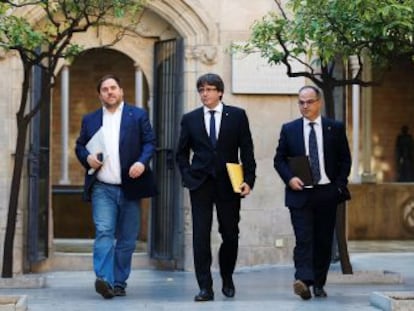 Después de que Carles Puigdemont declarase este martes en el Parlament la independencia de Cataluña para dejarla en suspenso seis segundos después y luego firmar un certificado de secesión extramuros del hemiciclo, el Gobierno central se reúne hoy para decidir con qué medidas responder a ese movimiento y, sobre todo, si aplica el artículo 155 de la Constitución, es decir, si recurre a la llamada "coerción estatal". El 155 permite al Estado intervenir para obligar a las autoridades de una Comunidad Autónoma a cumplir las leyes cuando se han agotado todas las vías de control. Hasta ahora, los representantes públicos han preferido no pronunciarlo. Pero ese número, hasta ahora casi un tabú, se baraja entre la ciudadanía y los partidos con fluidez: la cuestión entre las formaciones constitucionalistas comienza a ser no ya si usarlo o no, sino cuándo, cómo y en qué condiciones.