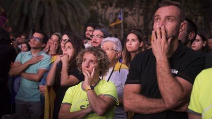 En una de las imágenes grabadas del momento en que Puigdemont parecía estar declarando la independencia de Cataluña —vídeos hechos con el móvil— puede verse a Rut García con su familia levantando los brazos. Lo envía ella misma. Ingeniera de Badalona residente en Barcelona, fue a ver el pleno del martes al Passeig de Lluís Companys. Lo hizo con su familia, del mismo modo que acude con ella desde 2012 a la Diada. “Decepción y confianza. El Govern la merece después de todo lo ocurrido. Así que si preguntas si esto baja, te digo que no. Se ha construido con muchas emociones que ni siquiera los tuyos pueden bajar ya. Y si el Govern da un paso atrás y te dice que mejor negociemos, que mejor la reforma, que mejor alargarlo, la calle le dirá que no. ¿No piden un referéndum y se hizo un referéndum a pesar de la ley porque la calle lo exigía? Pues esa calle, ese pueblo, lo hizo a pesar de todo y quiere aplicar el resultado. Es fácil”.