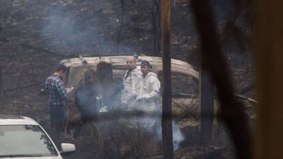 El vehículo en el que viajaban las dos primeras víctimas mortales de la virulenta ola de incendios en Galicia emprendió el camino de huida marcado por los agentes, pero el giro en la dirección del fuerte viento obligó a quienes salían de estas aldeas de Nigrán a dar vuelta atrás. El coche de las dos fallecidas no lo logró y fue encontrado sobre las diez de la noche completamente calcinado por el concejal de Vías y Obras de Nigrán, Rubén Rial, un bombero en excendencia que se unió a las tareas de extinción y que se acercó al lugar de la tragedia con una motobomba.