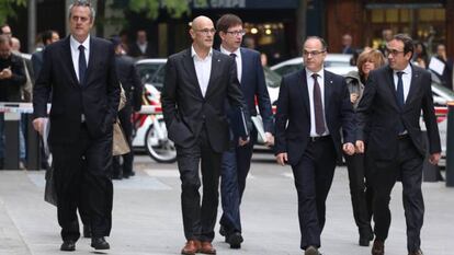 Todos los exmiembros del Govern se acogieron a su derecho a contestar solo a sus abogados, e insistieron en que “no están de acuerdo con la violencia” y “no han propugnado actos violentos”. Santi Vila, asesorado por el penalista Pau Molins —uno de los abogados que lograron la absolución de la infanta Cristina en el juicio del caso Nóos—, sí respondió a las preguntas del fiscal y la juez.