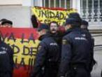 Un grupúsculo con enseñas de España recibe con insultos a los miembros de la Mesa a su llegada al Supremo