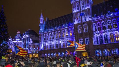 Mientras el acto echa a andar, el activismo se ha concentrado en las últimas horas, sin convocatorias, en las zonas nobles. Mercadillos de Navidad en los que se oyen proclamas esporádicas, el hotel desbordado donde este miércoles pudieron escuchar las intervenciones de Artur Mas y Carles Puigdemont, y como epicentro sentimental robado temporalmente a la belgitud, la citada Grand Place. Si al turista común se le identifica por la cabeza alzada observando su alrededor, el gofre de chorreante chocolate escurriéndose entre los dedos y el móvil siempre presto para un selfie, al turista político se le reconoce por todo lo anterior y porque, además, convive con el campo de visión limitado por la bandera. Decenas de esteladas emergieron anoche en la mayor plaza de Bruselas en medio del imponente espectáculo de luz y sonido habitual de la época navideña.