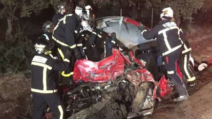 "Fue a las tres de la madrugada". "Iban a Seseña". "Se salió el coche de la carretera". "Ellos iban detrás, pero no llevaban el cinturón". "Al parecer, uno murió dentro del coche y otro salió disparado". "A los otros dos chicos no les pasó casi nada". "Ellos sí llevaban el cinturón". "Los padres están destrozados". "Son el de la panadería y el de la empresa de productos de limpieza…".