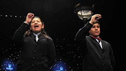 Los cuatro han sido los afortunados este año entre el plantel de San Ildefonso. Lo componían 40 chavales encargados de repartir 2.380 millones en premios. Una buena cosecha para cifras en aumento. Así lo admite Inmaculada García Martínez, presidenta de Loterías y Apuestas del Estado. “Estamos ya a niveles de venta parecidos a antes de la crisis con una recaudación de 2.760 millones en venta total”, asegura.