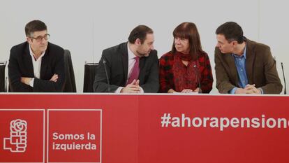 El PSOE está dispuesto a apoyar a Ciudadanos para que presida el Parlament de Cataluña así como la Generalitat. Pero la dirección socialista recuerda que sus votos son insuficientes —y el bloque constitucionalista no suma salvo una alteración de la mayoría independentista— y pide a Inés Arrimadas, quien en una entrevista en EL PAÍS afirma este lunes que no renuncia a formar Gobierno, que busque sus apoyos y deje de atacar a sus potenciales aliados, en particular al PSC. Sin retirar la vista de Cataluña, los socialistas comienzan el año apostando por una agenda social que permita salir a la política española del bucle catalán. Su primera iniciativa, presentada hoy en rueda de prensa, es una propuesta para la sostenibilidad del sistema público de pensiones a partir de ingresos extraordinarios vía Presupuestos Generales y de una nueva "cesta de impuestos" dedicados a financiarlas que no recaerían en las clases medias.