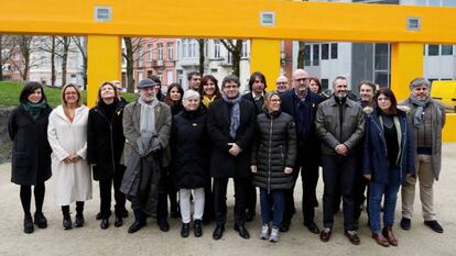 El expresident de la Generalitat posa junto al eurogrupo de Junts per Catalunya en Bruselas.Foto: atlas | Vídeo: FRANCOIS LENOIR