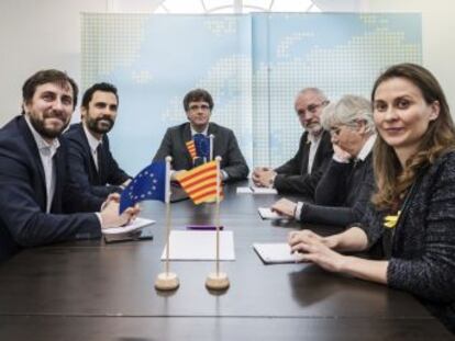 El encuentro, en el que también han participado los cuatros exconsejeros huidos a Bélgica, ha durado algo más de una hora, y se ha celebrado de forma improvisada en la sede de la European Free Alliance, una organización de partidos europeos afines al nacionalismo. Inicialmente estaba previsto que se vieran en la delegación de la Generalitat en Bruselas, pero el Gobierno español, a cargo de dicha sede desde que aplicó el artículo 155, prohibió que la reunión se celebrase en sus instalaciones y ordenó su cierre temporal durante la jornada de este miércoles. "En Bruselas existen unas 300 delegaciones regionales, pero hoy la única cerrada es la de Cataluña por causas injustificables que vulneran la Constitución y la carta de Derechos Humanos", se ha quejado el expresidente autonómico. "Vamos a estudiar las consecuencias legales, no solo en el marco jurídico español, sino en el belga", advirtió Torrent.