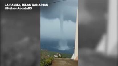 La tormenta que afecta a cinco de las siete islas canarias deja imágenes impactantes como una tromba marina que se ha producido hoy lunes en la costa de San Andrés y Sauces