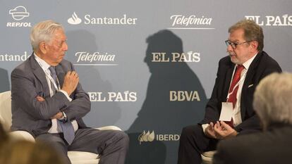 El nacionalismo como freno de la construcción europea. Como piedra en el zapato de la libertad. El académico y presidente de EL PAÍS, Juan Luis Cebrián, ha inaugurado este miércoles el Foro España 40-40, organizado por este diario, con un diálogo con el Nobel de Literatura Mario Vargas Llosa. El escritor peruano ha mostrado su esperanza en que tal y como el nacionalismo puede ser inoculado en las sociedades, también pueda ser derrotado. "Si el nacionalismo se puede construir, también se puede desmontar. Tengo la esperanza de que esta crisis vaya sembrando la semilla de la deconstrucción del nacionalismo catalán", ha dicho en referencia al desafío independentista.