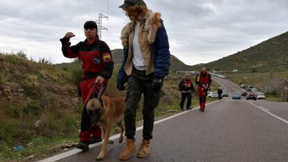 Desde el miércoles el dispositivo ha ido ampliándose. Son al menos dos centenares de personas, entre las que hay más de cien voluntarios que ayer continuaron hasta bien entrada la noche registrando pozos y cortijos a contrarreloj. El temporal de lluvia y viento que azota la zona ha obligado a cambiar el puesto de mando: de unas carpas levantadas en Las Hortichuelas a la biblioteca municipal de Las Negras.