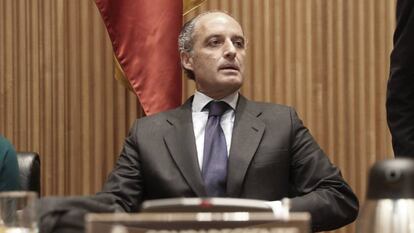 El expresidente valenciano, con tres imputaciones, niega la financiación ilegal del PP en el Congreso de los Diputados