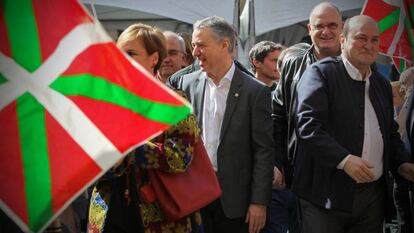El PNV sigue firme en su idea de rechazar cualquier tipo de entendimiento con el PP —imprescindible para la aprobación de los presupuestos— mientras el Gobierno de Rajoy aplique "políticas de excepcionalidad" en Cataluña, en referencia a la aplicación del artículo 155 de la Constitución. Así lo ha afirmado este domingo el presidente del PNV, Andoni Ortuzar, durante la celebración del Aberri Eguna (Día de la Patria vasca): "Nuestra posición es clara, con el 155 no jugamos". "La mera existencia del artículo 155 y la aplicación que se está haciendo de este en Cataluña son también un ataque a Euskadi y a nuestra idea del autogobierno", ha añadido.