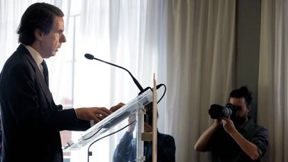 El expresidente del Gobierno también se ha referido a otras cuestiones de la política nacional. Ha admitido la buena marcha de la economía. Ha reconocido que la fragmentación política que ha supuesto la irrupción de Ciudadanos y de Podemos dificulta la gobernabilidad. Y ha reclamado, en cualquier caso, que el Ejecutivo deje de retrasar los cambios necesarios en pensiones, energía o sector público. “No podemos seguir eludiendo reformas que siguen aplazadas”, ha argumentado Aznar, que ha apuntado directamente Rajoy: “En España no se hace una reforma desde hace cinco años”.