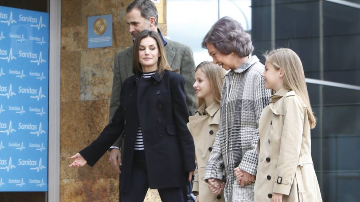 En aquellas imágenes aparentemente se observaba un desencuentro cuando la reina se cruzó para impedir una foto de sus hijas Leonor y Sofía con su abuela, un escenario muy distinto a lo que ha ocurrido esta mañana a las puertas del Hospital La Moraleja, donde todos han posado ordenadamente, amables y sonrientes, para la prensa.