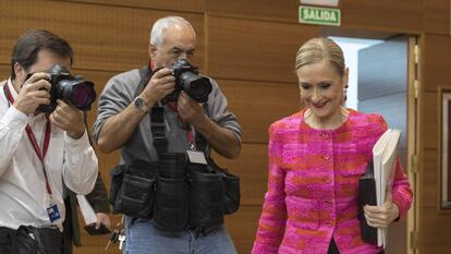 Cifuentes ha insistido en su inocencia durante el pleno ordinario de este jueves en la Asamblea de Madrid. "Ni estoy imputada, ni he falseado ningún currículum", ha incidido la presidenta regional. En su intervención, la dirigente autonómica también ha respondido a las acusaciones de la portavoz de Podemos, Lorena Ruiz-Huerta, de "preparar puertas giratorias" para volver a la universidad cuando abandone la política. "No necesito ninguna puerta giratoria porque soy funcionaria por oposición pública. Usted no ha necesitado hacer ningún máster para hacer las cosas que usted domina, la manipulación", ha respondido Cifuentes a Huerta.