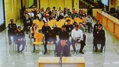 Un argumento similar sobre la rueda de reconocimiento ha esgrimido Julen Goikoetxea. “Uno de los que estaba allí me dijo: no entres, eres el único blanco”. Su letrado, Manuel Ollé, ha hecho ver al tribunal que en esa diligencia de identificación nadie le pidió que se cambiara de sitio para comprobar que las víctimas lo señalaban sin ningún género de duda. “Quiero pensar que no hay mala fe y me identifican porque se han confundido, y me pudieron ver en el Koxka”, ha dicho Goikoetxea, que se ha autodefinido como “ignorante en política”. Aratz Urrizola también señaló no tener “nada que ver” con Alde Hemendik, y que solo acudió a una comida popular de Ospa en 2011, cuando tenía 16 años.