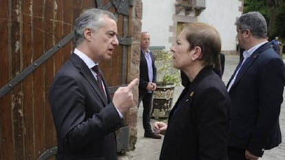 No han estado en Cambo-les-Bains, pero han seguido lo que ahí ocurría apenas 50 kilómetros al sur, en el Palacio de Bértiz. El lehendakari Iñigo Urkullu y la presidenta navarra Uxue Barkos han mantenido un encuentro entre ambos gobiernos del que ha salido un compromiso para trabajar en el desarrollo de políticas conjuntas de memoria y convivencia. También han apostado por abordar, entre los dos gobiernos autonómicos y el central, la política penitenciaria que, según el documento conjunto aprobado este viernes, debe adaptarse “al nuevo contexto” y “alcanzar a todas las fuerzas políticas”, desde el PP a EH Bildu. Así, proponen al gobierno central el acercamiento de los presos a cárceles cercanas a sus lugares de residencia a la par que emplazan a los reclusos a “desarrollar las vías legales penitenciarias sobre la base de los principios de individualización, reconocimiento de daño causado y reinserción”.