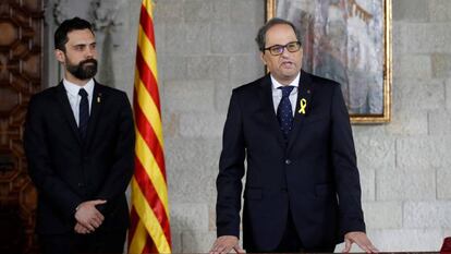 El deterioro lo empezó el propio Torra al autocalificarse de presidente provisional. Siguió Carles Puigdemont, al decretarle interino por cinco meses. Continuó el presidente del Parlament, Roger Torrent, negándose a ir a ver al jefe del Estado, como iba siendo costumbre en casi todos los relevos, incluso para plantearle educadamente ideas contrarias. Culmina con estas primera horas del president electo, de perfiles servil o agitatorio —visita a Berlín, inminente viaje a las cárceles— y nivel presidencial de un cero escandaloso.