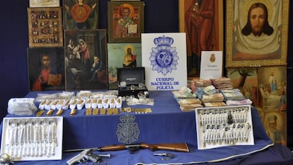 Los agentes, en una operación conjunta con Europol, Vigilancia Aduanera de la Agencia Tributaria y la Policía Judicial de Bulgaria, practicaron un total de 24 entradas y un registro de inmuebles en Madrid (13), Zamora (cinco), Salamanca (uno), Marbella (uno) y Bulgaria (tres). En total, se intervinieron un total de 40 kilos de lingotes y monedas de oro, 15 kilos de joyería diversa, cuatro diamantes, 14 relojes de oro, un coche de alta gama, 390.000 euros en efectivo, 14 obras de iconos ortodoxos, dos armas cortas y un rifle con cargador.