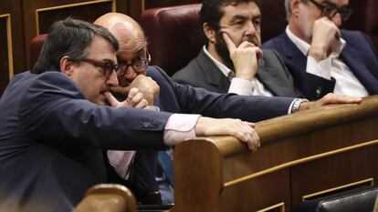 Lo primero que hizo Aitor Esteban fue mirar sus escaños con perplejidad, porque no salían las cuentas. Llamaron a un ujier y, efectivamente, había una silla de más. Entonces se produjo un momento que hubiera resultado inverosímil en una ficción, porque era demasiado perfecto como metáfora: dos bedeles cogieron la silla y se la llevaron a la bancada del PP. Es decir, el PNV envió de vuelta sus escaños al PP, como si fuera una mudanza de muebles tras una separacion de bienes. Concretamente, en esta butaca se acabó sentando el propio portavoz conservador, Rafael Hernando. Solo horas después se supo que el movimiento subconsciente del mobiliario del hemiciclo estaba ya contando algo de sus moradores. Lo siguiente que se vio es al líder del PDeCAT en el Congreso, Carles Campuzano, hablando muy amistosamente con Esteban, con apretones en el antebrazo, palmaditas y demás señales de aprecio físico. Los periodistas se daban codazos: mira, mira. Todo era leer lenguaje no verbal.
