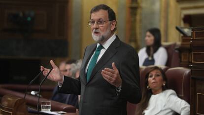 Rajoy se defendió con uñas y dientes ante la posibilidad de que la iniciativa del PSOE pudiera desalojarle de La Moncloa, algo que quizá intuía tras una larga noche de conversaciones con el PNV. Y no reparó en munición. Acusó a Sánchez de que su ambición e incapacidad electoral fueran la única causa de la moción. Trató de imponer su propia versión de la sentencia de Gürtel. Puso en marcha el ventilador de la corrupción para embarrar al PSOE en su caída. Mostró el borde de los abismos por los que caería España si triunfaba la iniciativa. Incluso trató de abrir brechas entre el PSOE y los partidos que podrían apoyar la moción recuperando declaraciones negativas de Sánchez sobre Podemos, ERC o el PDeCAT. O de barones del PSOE contra Sánchez.