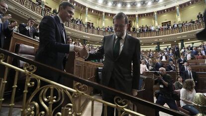 Tras casi siete años en La Moncloa, Mariano Rajoy afronta la vuelta a la sede del PP en Génova en medio de una crisis de consecuencias imprevisibles. Los representantes de la formación conservadora asistieron ayer conmocionados al triunfo de la moción de censura. Hubo lágrimas y gestos desencajados en el Congreso. Un trauma profundo. Con la herida recién abierta, los más veteranos consejeros del presidente se lanzaron a recomendar la pausa como mejor respuesta. En tiempos de tribulación, no hacer mudanza, vinieron a decir, encadenando de nuevo el destino del PP a Rajoy. Sin embargo, en el resto de España aumentaron las voces pidiendo la convocatoria de una junta directiva o un congreso extraordinario que ponga sobre la mesa soluciones para la crisis. Las dos partes solo tienen un punto en común: Rajoy debe pilotar el proceso para asegurarse de que no estalla un conflicto interno.