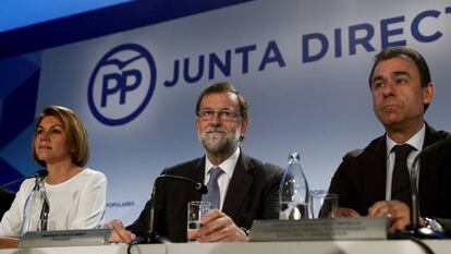 Mariano Rajoy ha propuesto este lunes que el Congreso extraordinario en el que el PP elegirá a su sucesor se celebre el 20 y el 21 de julio. La formación conservadora afronta ese proceso intentando evitar la división interna y rodeada por las peticiones de los críticos del partido, que reclaman un debate ideológico profundo, el contraste de proyectos y que se escuche a las bases. Frente a la amenaza de que la lucha por el poder provoque una guerra entre los pesos pesados del PP (Alberto Núñez Feijóo, María Dolores de Cospedal y Soraya Sáenz de Santamaría, que no han oficializado su candidatura), Rajoy ha avanzado que no intervendrá para decantar el pulso. Él no será como José María Aznar, que le designó como heredero en 2003. "No voy a señalar a nadie con el dedo ni a vetar a nadie. No voy a influir ni condicionar vuestra libre elección. No tengo sucesores ni delfines", ha dicho Rajoy.