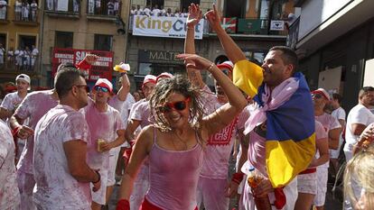Los protocolos contra agresiones y abusos sexuales se aplican en todas las fiestas populares de Pamplona. Primero se pusieron en marcha sin el apoyo explícito del Ayuntamiento, que ahora también participa desde la plataforma Sanfermines en la Igualdad junto a las peñas y los colectivos feministas. El cambio se produjo tras las fiestas de 2013. Ese año, explica Zurine Altable, las fotografías de varias mujeres en volandas y sin camiseta a las que manoseaban los pechos en grupo saltaron a la prensa internacional. Se sumaron al clamor que comenzó en 2008 con el asesinato de Nagore Laffarge, violada y matada a golpes tras resistirse a mantener relaciones sexuales con José Diego Yllanes en otra noche de San Fermín. Aquellas fotos publicadas en periódicos europeos dejaron de ser imágenes “vividas como parte de la fiesta” para convertirse en motivo de vergüenza. El Ayuntamiento escuchó el clamor de las feministas y se sumó a la causa. “Quitarnos la camiseta no da derecho a nadie a tocarnos”, recuerda Altable, de 37 años e integrante del colectivo Bilgune Feminista. Esos protocolos de actuación —cada barrio tiene el suyo y hay uno del Ayuntamiento— se elaboran de forma participativa.