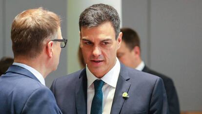 El presidente español enmarcó ese acuerdo bilateral, que Alemania quiere firmar con otras naciones ribereñas del Mediterráneo, en un ámbito de "trabajo recíproco" sobre la base de la normativa fijada por el acuerdo de Dublín que obliga en teoría a los países donde los inmigrantes han sido registrados por primera vez a acogerlos al margen de dónde se encuentren finalmente. Sánchez ya le anticipó esta semana pasada a Merkel en Berlín, en un desayuno de trabajo, su disposición a colaborar y este viernes en Bruselas reafirmó que "España quiere ser responsable con la realidad de los movimientos secundarios" y busca así "reforzar sus vínculos políticos y empáticos con Alemania".