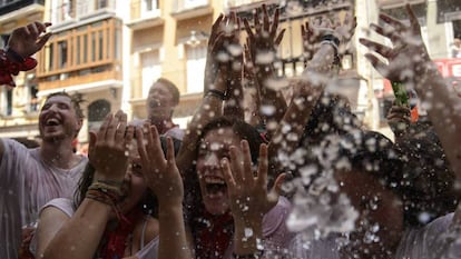 "¡Gora borroka feminista!, ¡A tope!, ¡Empalmada!, ¡Hasta el encierro!". Las chicas tienen permiso, algunas por primera vez, para no volver a dormir a casa. Gritan y dan saltitos mientras se sujetan el top; 17 años y ganas de celebrarlo. Es la 1.30 de la mañana, agarradas unas a otras por las fajas, se abren paso entre la multitud de la calle San Nicolás, una mezcla transversal de edades, nacionalidades y niveles etílicos. “Quita pesao”, le dicen a un treintañero que trata de torearlas al grito de “guapas”. “Tenemos que ocupar espacios, vestirnos como queramos, el problema lo tienen algunos tíos”, explicarán luego, justo antes de gritar “¡Empoderadas!”. Son siete, llevan la bebida en una botella de dos litros y las llamaremos Sangría'2018 (como su grupo de Whatsapp para estos sanfermines) porque son menores, no porque no quieran darlo: “Tía, pon mi nombre, o mejor… ¡mi Insta!”.
