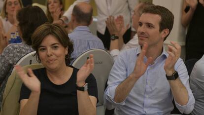 La escalada de reproches entre Soraya Sáenz de Santamaría y Pablo Casado desata la alarma en el partido