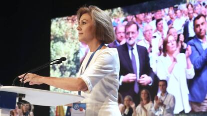 Hace 10 años y un mes, cuando Mariano Rajoy sorprendió a casi todos designando en el conflictivo congreso del PP de Valencia a una bastante desconocida Cospedal como su número dos, la secretaria general hizo un discurso de estreno bastante clásico, en el que presumió de un partido “fuerte, unido y abierto” y unos militantes que calificó como los mejores de España. Un piropo de rigor encaminado a ganarse a una base bastante acostumbrada a vencer, a manejar poder y que desconfiaba de una mujer joven sin apenas experiencia de ese nivel. Este viernes, en la sesión inaugural de este 19º congreso extraordinario para designar un nuevo líder tras la marcha apurada de Mariano Rajoy, ha repetido la misma frase pero con otro objetivo: defender su labor.