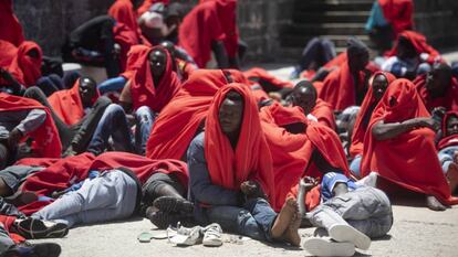 La inmigración irregular se ha más que duplicado en lo que va de año respecto a las cifras de 2017. España es ya la principal ruta de acceso a Europa, por encima de Italia. Y las infraestructuras de acogida se quedan pequeñas. Cada vez más pequeñas: hasta 260 migrantes han dormido los dos últimos días en la cubierta de un buque de Salvamento Marítimo; más de 50 se hacinaban, sentados y acurrucados al raso y de madrugada, en un pequeño patio de la comisaría de Algeciras. 90 personas más se agolpaban en módulos de obra en el puerto de Barbate. En todos esos lugares, un número indeterminado de inmigrantes han acabado en la calle tras las 72 horas de detención policial sin ni siquiera estar identificados y vagan por pueblos como Medina Sidonia o Chiclana. Esas son algunas de las escenas que se están viviendo desde el pasado fin de semana en la costa más al sur de España.