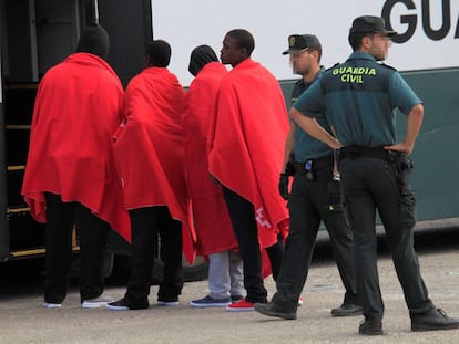 A poco más 200 kilómetros de Motril, el colapso es parecido. En Algeciras, a primera hora de la mañana de ayer, el Sindicato Unificado de la Policía difundió fotografías y un vídeo de más de 50 inmigrantes, aparentemente subsaharianos, hacinados en el patio de acceso a los calabozos de la comisaría. Unos aparecen sentados, otros acurrucados en el suelo e incluso uno de ellos está de pie, apoyado contra un muro. “Estuvimos dudando si difundir o no el material, pero lo hemos hecho por si se remueve alguna conciencia. Esto no puede soportarse más”, reconocen fuentes del sindicato policial.