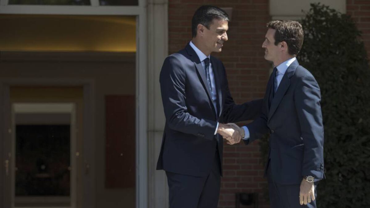Durante la semana se habían dicho de todo. El PP llamó a Pedro Sánchez “demagogo”, “buenista”, “débil” y dijo que estaba “arrodillado” ante el independentismo. Desde el Gobierno, acusaron al presidente del PP de aproximarse con sus palabras al discurso xenófobo de Matteo Salvini y de “no estar preparado” para gobernar. Pero llegado el día de su primer cara a cara en La Moncloa, el presidente del Gobierno y el líder de la oposición se encerraron durante dos horas y cincuenta minutos en el Palacio de la Moncloa. No llegó, sin embargo, para que alcanzaran acuerdos concretos sobre los asuntos de Estado que había propuesto Sánchez.