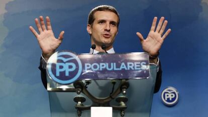 El traslado del caso al Supremo, que debe decidir si lo archiva o si practica las medidas sugeridas por la juez —como requerir a Casado su ordenador para comprobar la veracidad de los trabajos presentados—, ha pillado al líder popular en pleno proceso de integración del partido tras la traumática pugna de las primarias. Su rival, Soraya Sáenz de Santamaría, aún no tiene un puesto en la dirección, y como ella, nadie de su núcleo duro. El líder del PP dejó caer que se había utilizado la polémica de su máster durante la campaña de las primarias y aseguró que de no haber tenido “la absoluta certeza” de que no hizo “nada incorrecto”, no se habría presentado. “Quiero enviar un mensaje de tranquilidad a todos los populares”, insistió.