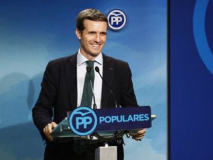 El presidente del Partido Popular se dirige a los medios desde Roquetas de Mar